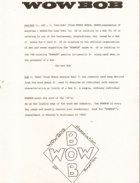 The legend of WOW BOB is captured in these riveting artifacts: