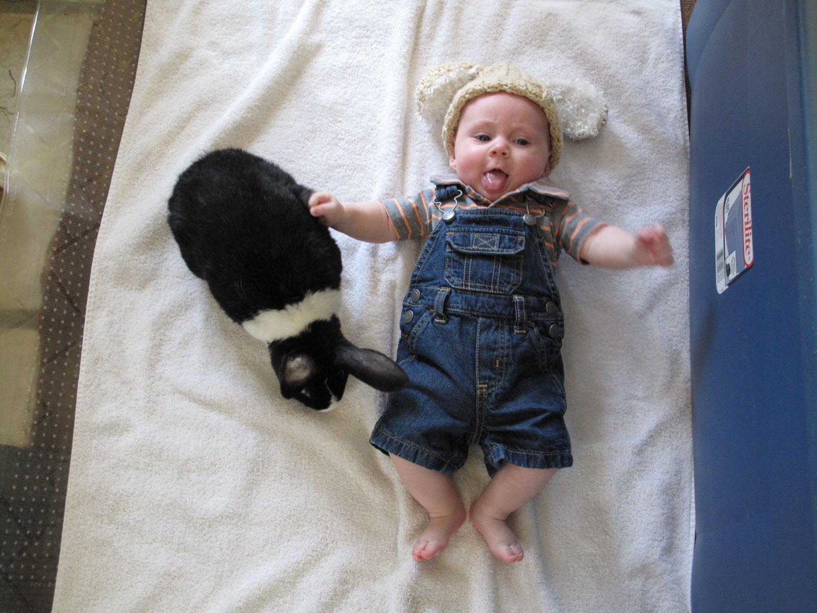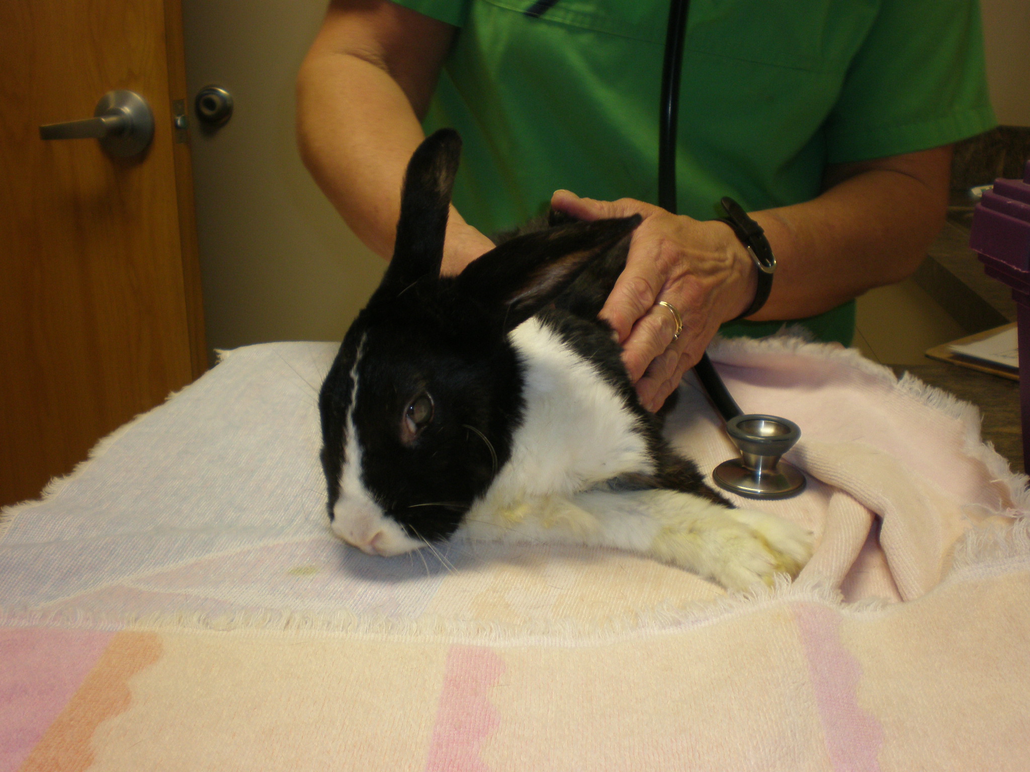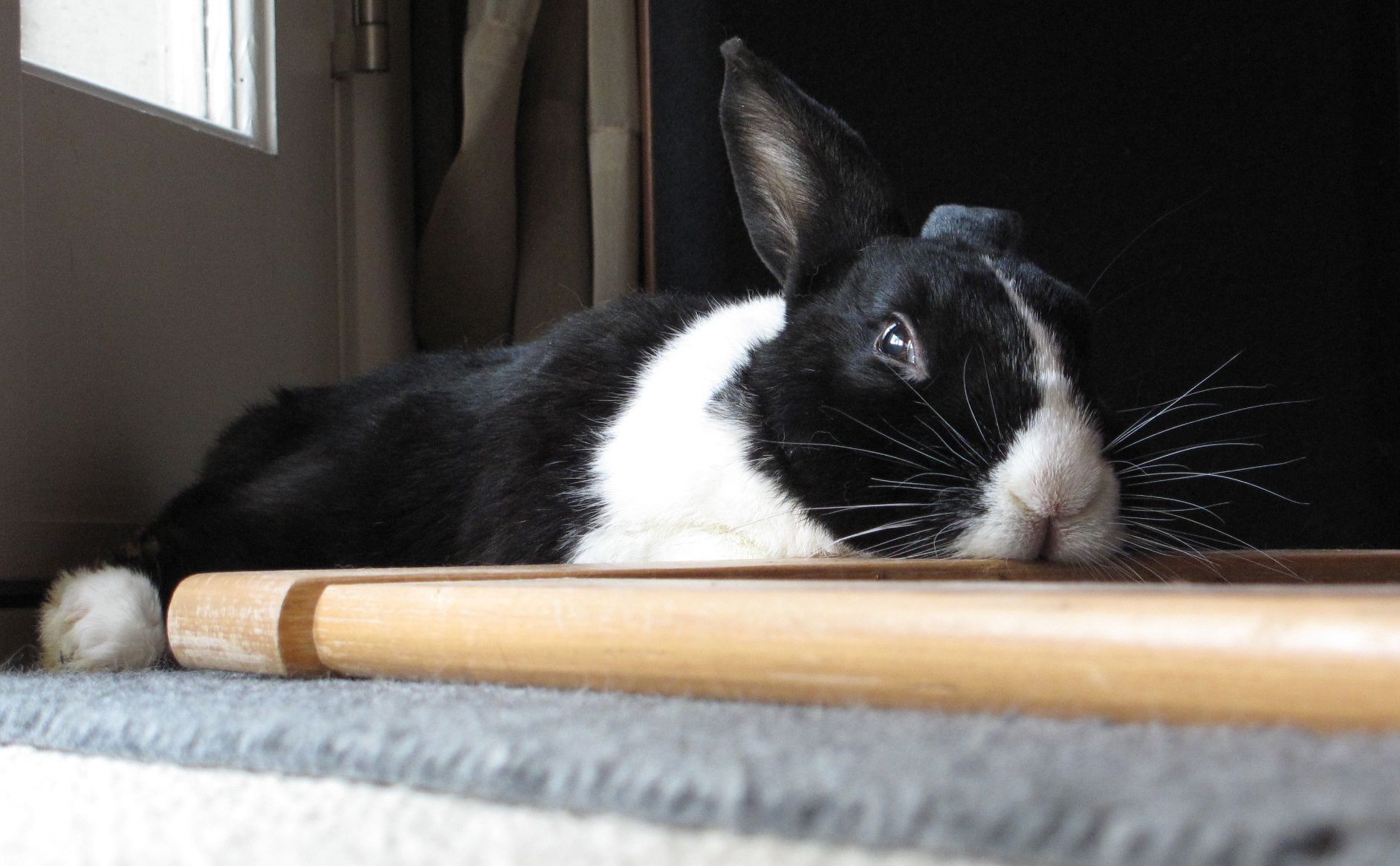 Optimus Prime Bachmann aka O.P. aka Opie aka The Douche aka Brat aka Snot Rabbit aka Black-n-White was adopted as a one-year old Dutch bunny from the Missouri House Rabbit Society in July of 2001. He was a one-year wedding anniversary present from Matt to Angela.