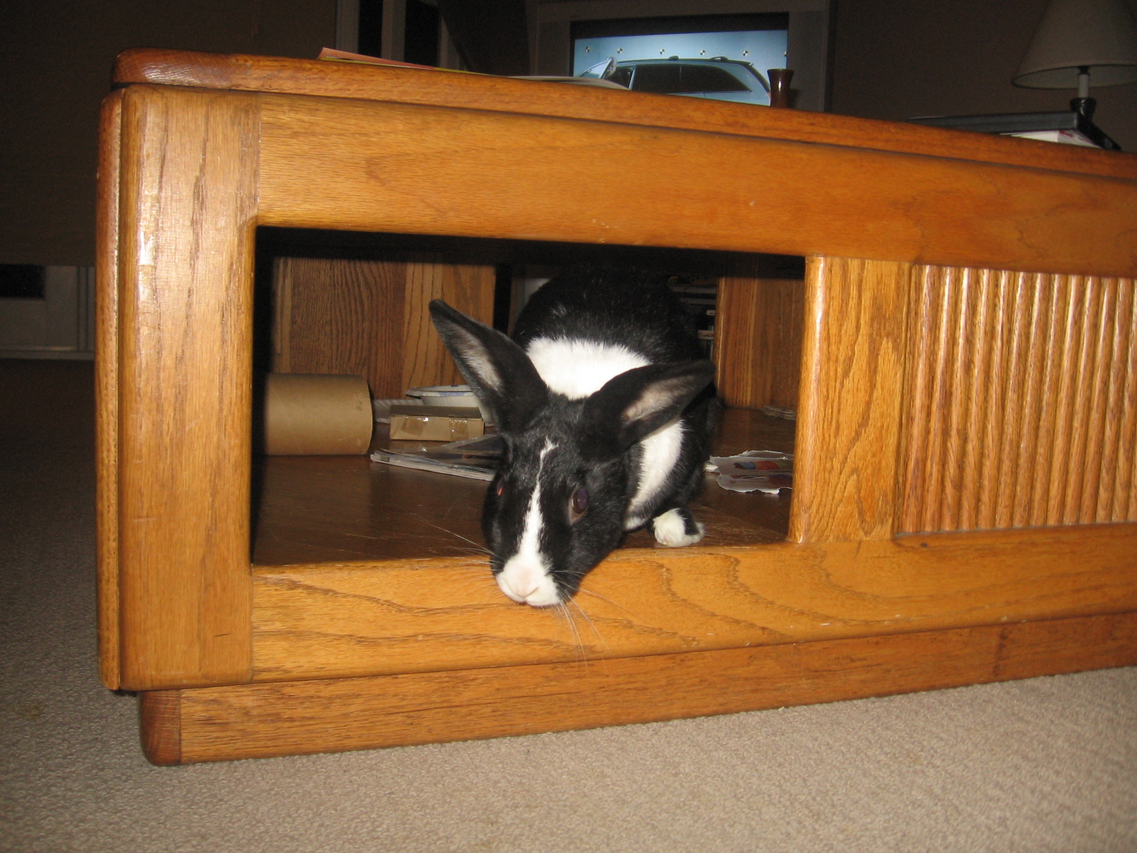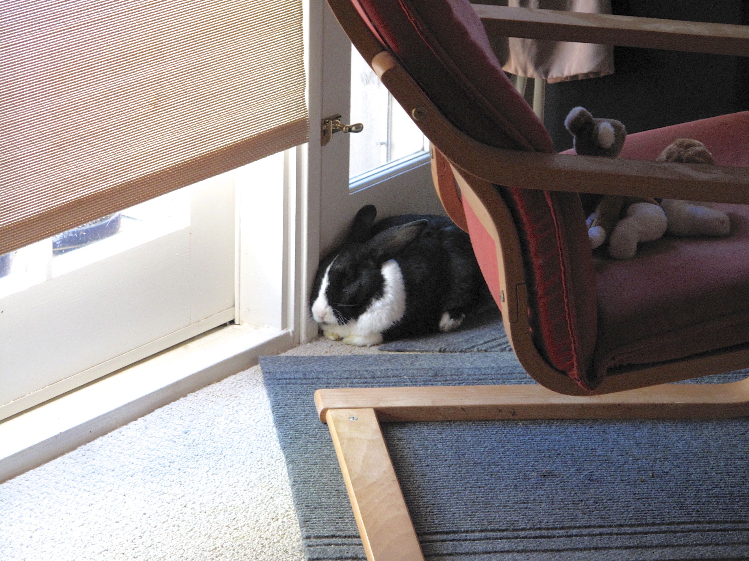 Opie and Cali were even more spoiled when we moved into our first house that gave them their own room and plenty of space to explore. Opie was known to make an aggressive leap onto our rather tall bed to wake us up for his morning breakfast. His attempts to jump down off the bed were comical, although ultimately successful. He also took advantage of the hallway where a frightened rabbit could really pick up speed when the occasion called for it.