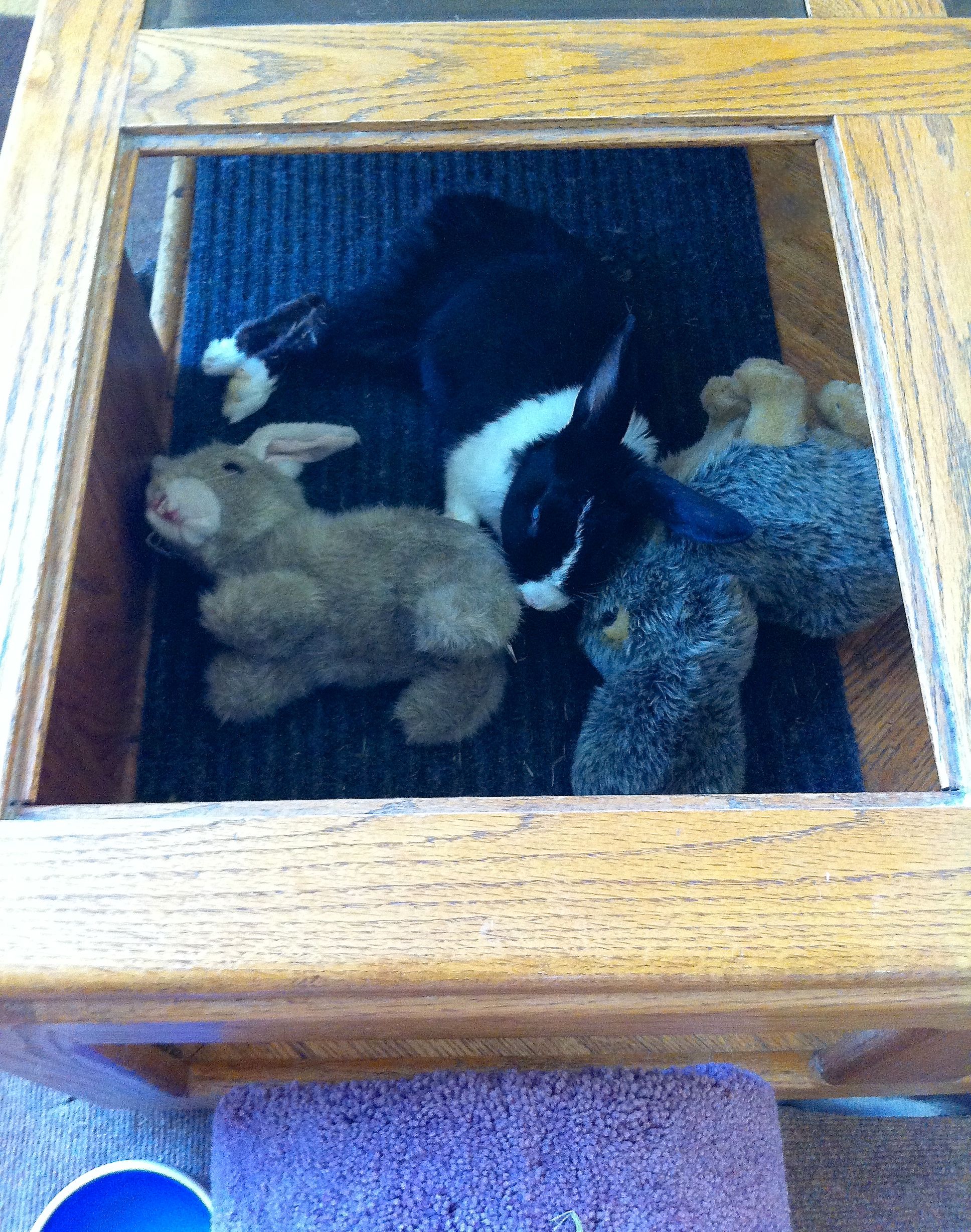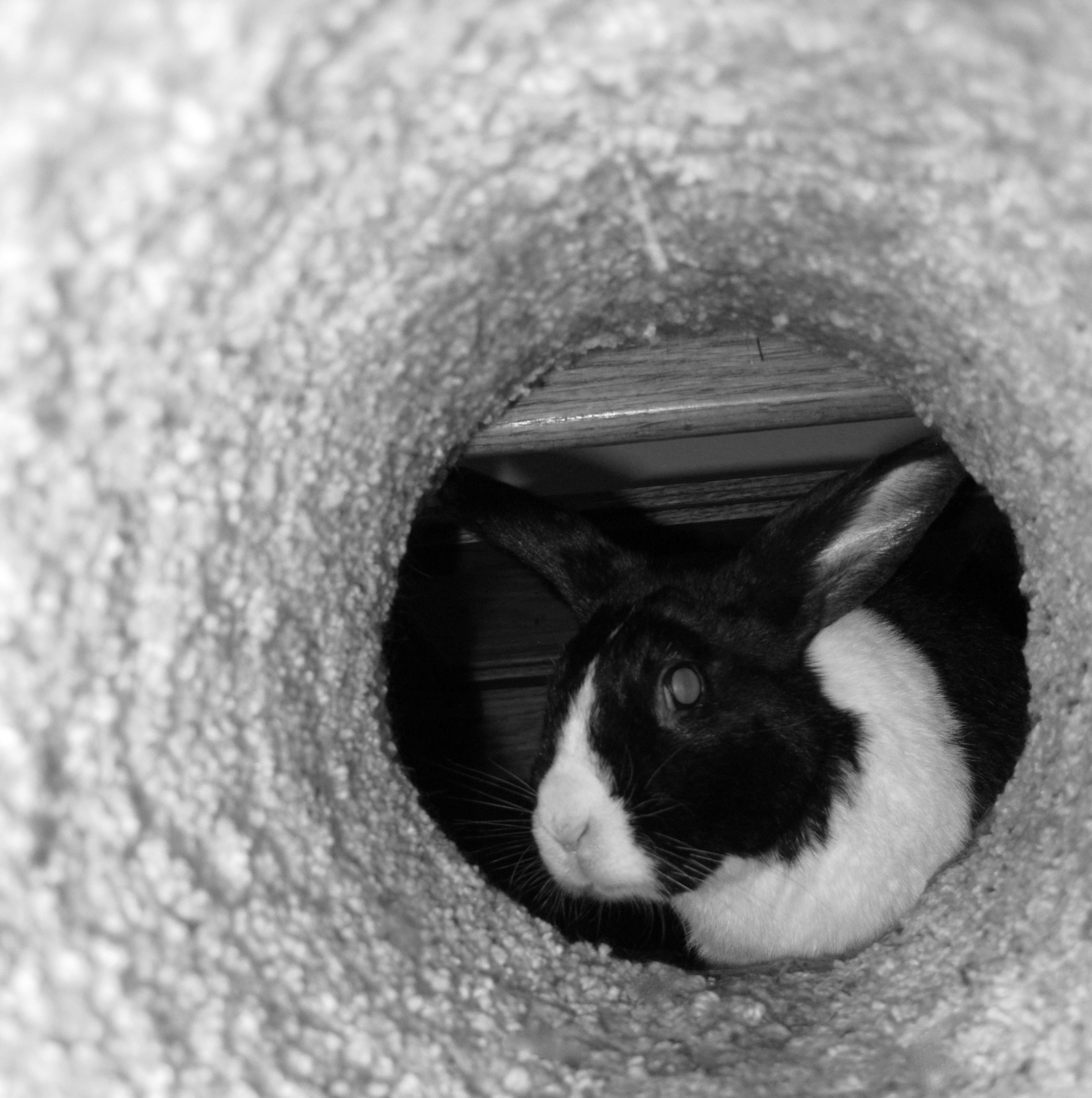 Opie was a friendly bunny that really enjoyed being petted, but not necessarily held. He had an iron stomach that could digest any and all foods that came his way. He would thump loudly when upset. His favorite spots to relax were under our bed and under his coffee table – always obsessed with the coffee table. He loved to run through his tunnels. He demanded attention and grooming from Cali, but was not eager to return the favor.